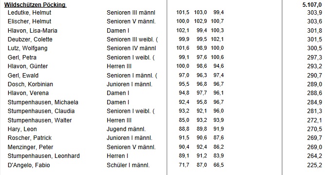 Außerdem schießen Leonhard Stumpenhausen, Maxi Ammerl, Korbinian Dosch und Patrick Roscher wechselweise in den Rundenwettkämpfen ihre 348 bis 327 Durchschnittsringe.