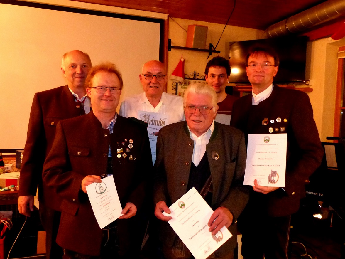 Im feierlichen Rahmen des Königsschießens der Jahresabschlussfeier der Pöckinger Wildschützen wurden im Januar folgende Mitglieder mit Urkunden und Abzeichen von Schützenmeister Walter Stumpenhausen geehrt:
