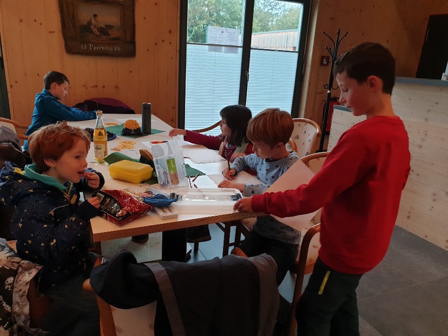 Schnell verging der ausgefüllte Nachmittag und während der Auswertung, genossen die Kinder den Nachtisch. Bei Pudding mit Butterkeksen, selbstgepoppten Popcorn und Gummibärchen plauderten sie ausgelassen über die gemeisterten Aufgaben und den gemeinsamen Aktionstag.