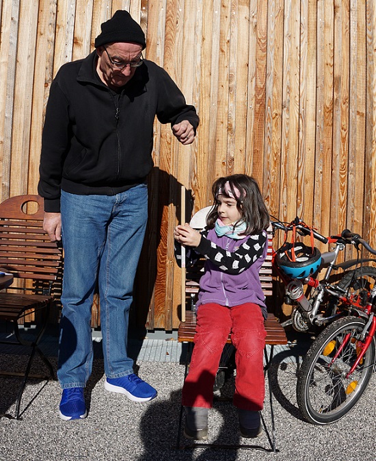 Mit Wurfübungen (auf eine Zielscheibe, mit einem Strohhalm als Pfeil und rückwärts in einen Eimer) wurde ihre Zielgenauigkeit trainiert. Auch der Gleichgewichtssinn kam beim Balancieren und auf-einem-Bein-Stehen nicht zu kurz.