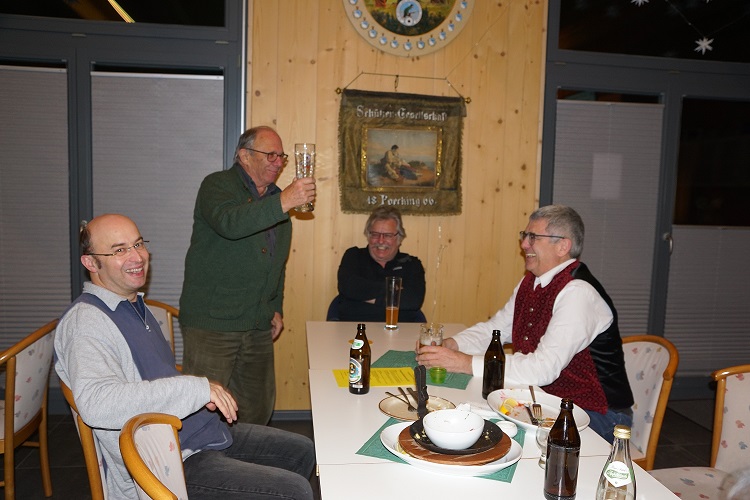 Um 19:13 Uhr begrüßte der 1. Schützenmeister Walter Stumpenhausen 34 anwesende Mitglieder und besonders Ehrenmitglied Helmut Elischer und Bürgermeister Rainer Schnitzler. Es folgte die Totenehrung, sich zum Gedenken an unsere in den letzten Jahren verstorbenen Mitglieder zu erheben. 2020 – 2022 sind unser Ehrenmitglied und Altbürgermeister Konrad Krabler, Rüdiger Lutz, Hans-Peter Walter und Lorenz Heilmeier verstorben.