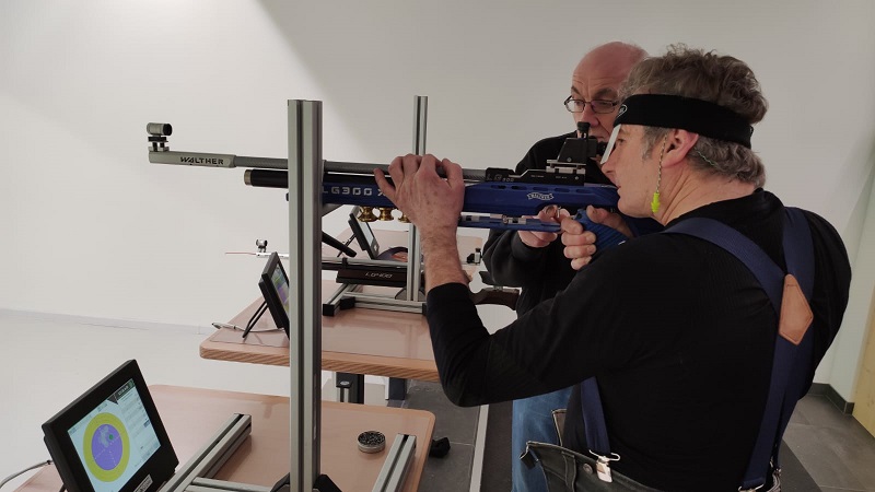 Im Team wurde geschossen, im Team wurde gewonnen. Ein Schütze hielt das Gewehr fest und zielte mit Diopter und Ringkorn auf die schwarze Scheibe, während sein Kamerad den Finger am Abzug möglichst im richtigen Zeitpunkt drückte. Auch hier wurden Geschicklichkeit, Fingerfertigkeit, Konzentration trainiert und zudem noch Teamgeist, Abstimmung unter Kameraden und das gegenseitige Vertrauen auf die Probe gestellt.