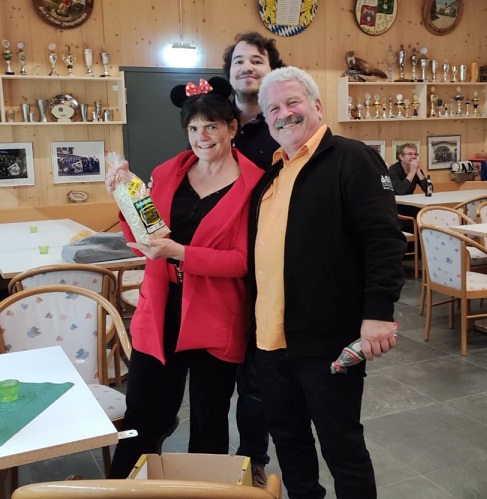 Anhand der Ergebnisse stellten wir fest, dass das jahrelange Zusammenleben der Ehepaare ihnen anscheinend geholfen hatte, als Team die meisten Ringe zu sammeln und den besten Tiefschuss abzugeben. Alfred und Nadja Schmid freuten sich als Sieger über ihre Preise, 16 Jahre Zusammensein schweißten sie so stark zusammen, am ruhigsten ihr Gewehr zu halten und zum richtigen Zeitpunkt abzudrücken. Wein, deftige Salami, Honig und Cerealien standen zur Auswahl. Zweitplatziertes Ehepaar Walter und Claudia freuten sich über ihre Preise vor Petra und Ewald Gerl.